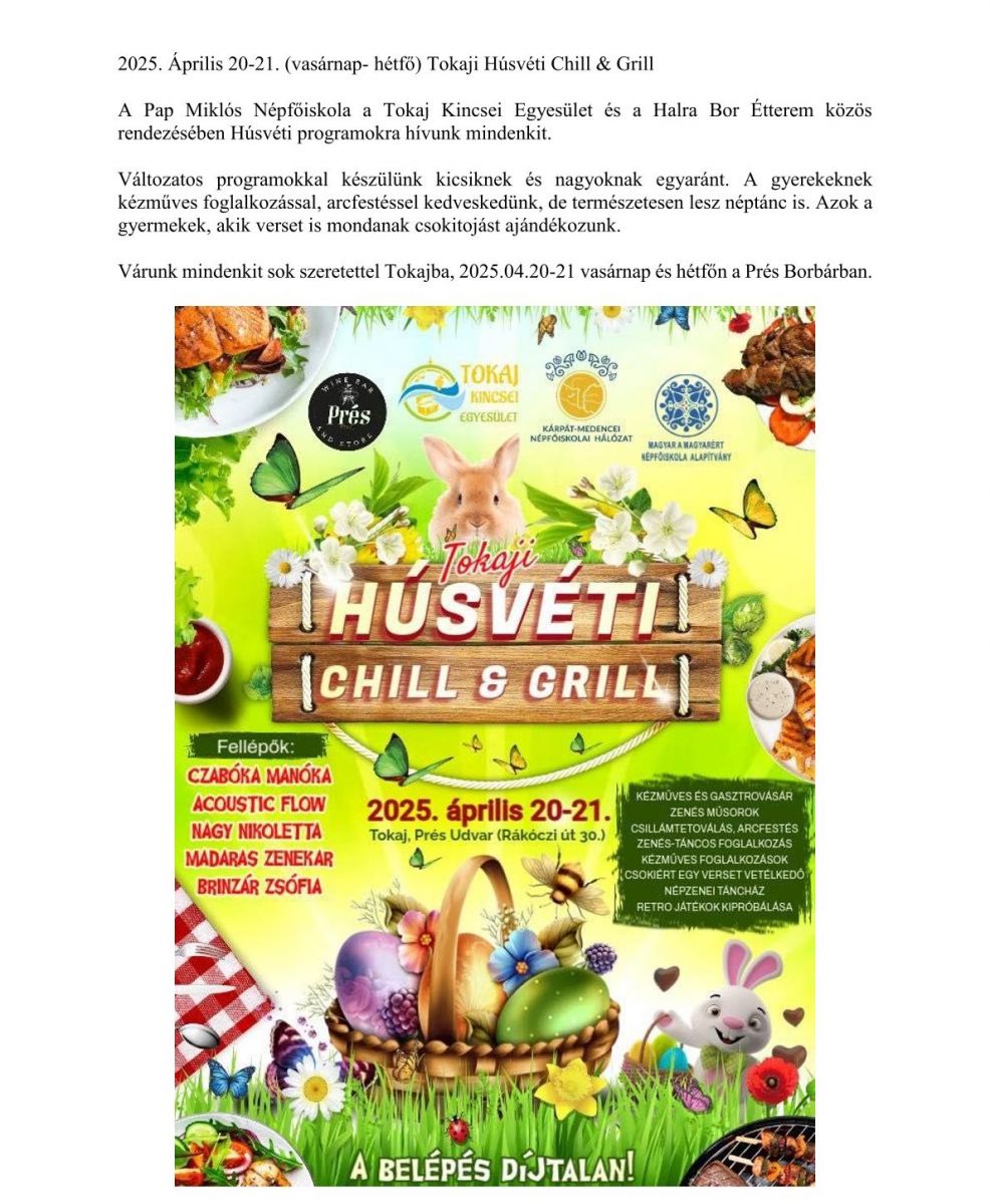 2025. Április 20-21. (vasárnap- hétfő) Tokaji Húsvéti Chill & Grill