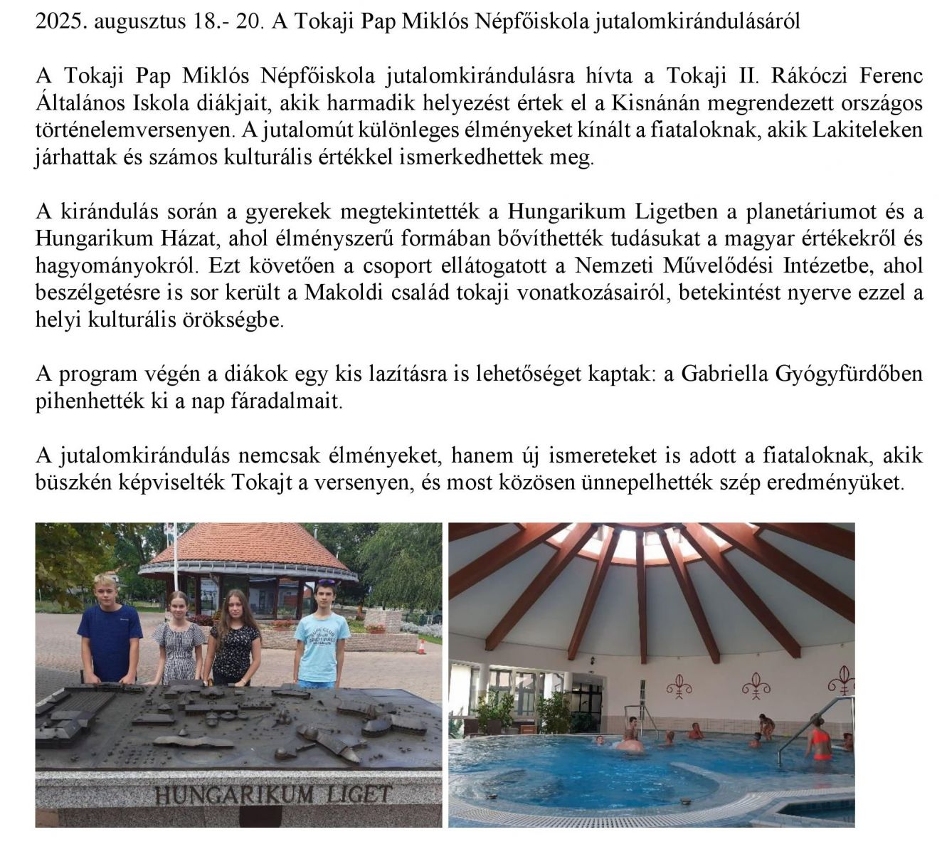 2025. augusztus 18.- 20. A Tokaji Pap Miklós Népfőiskola jutalomkirándulásáról