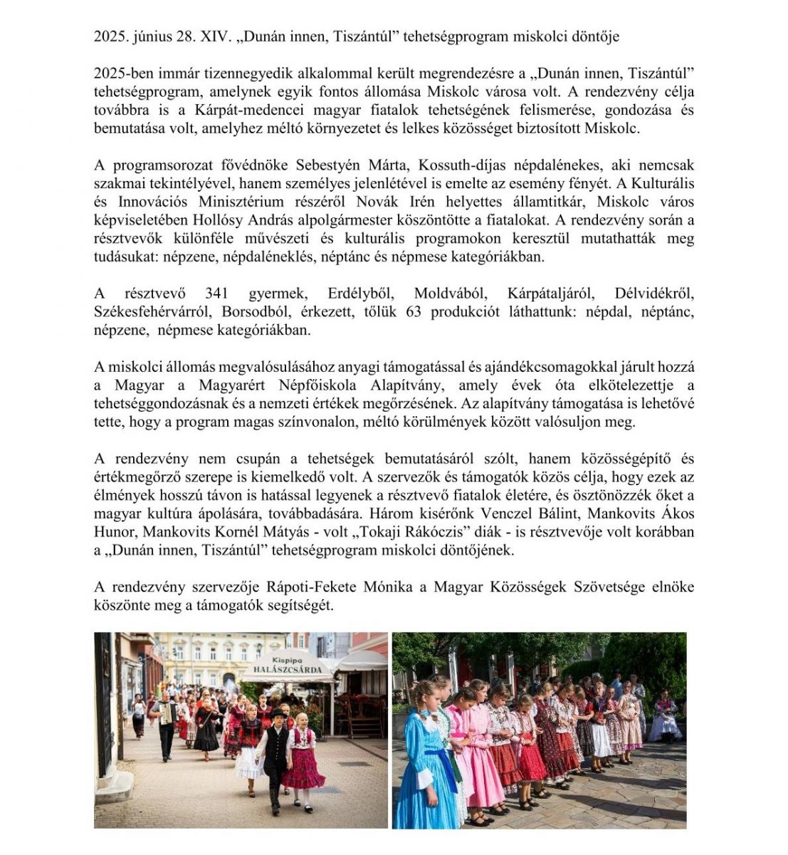 2025. június 28. XIV. „Dunán innen, Tiszántúl” tehetségprogram miskolci döntője