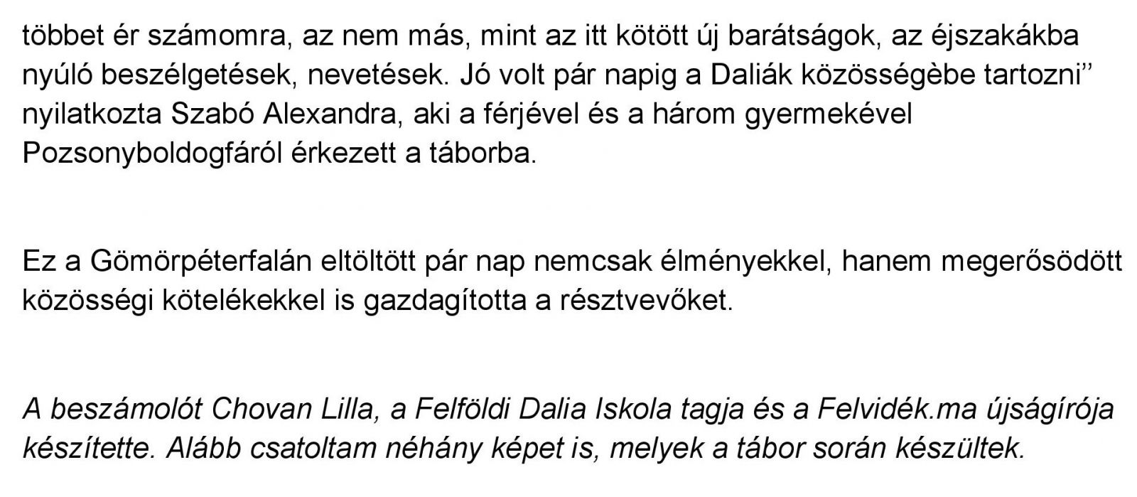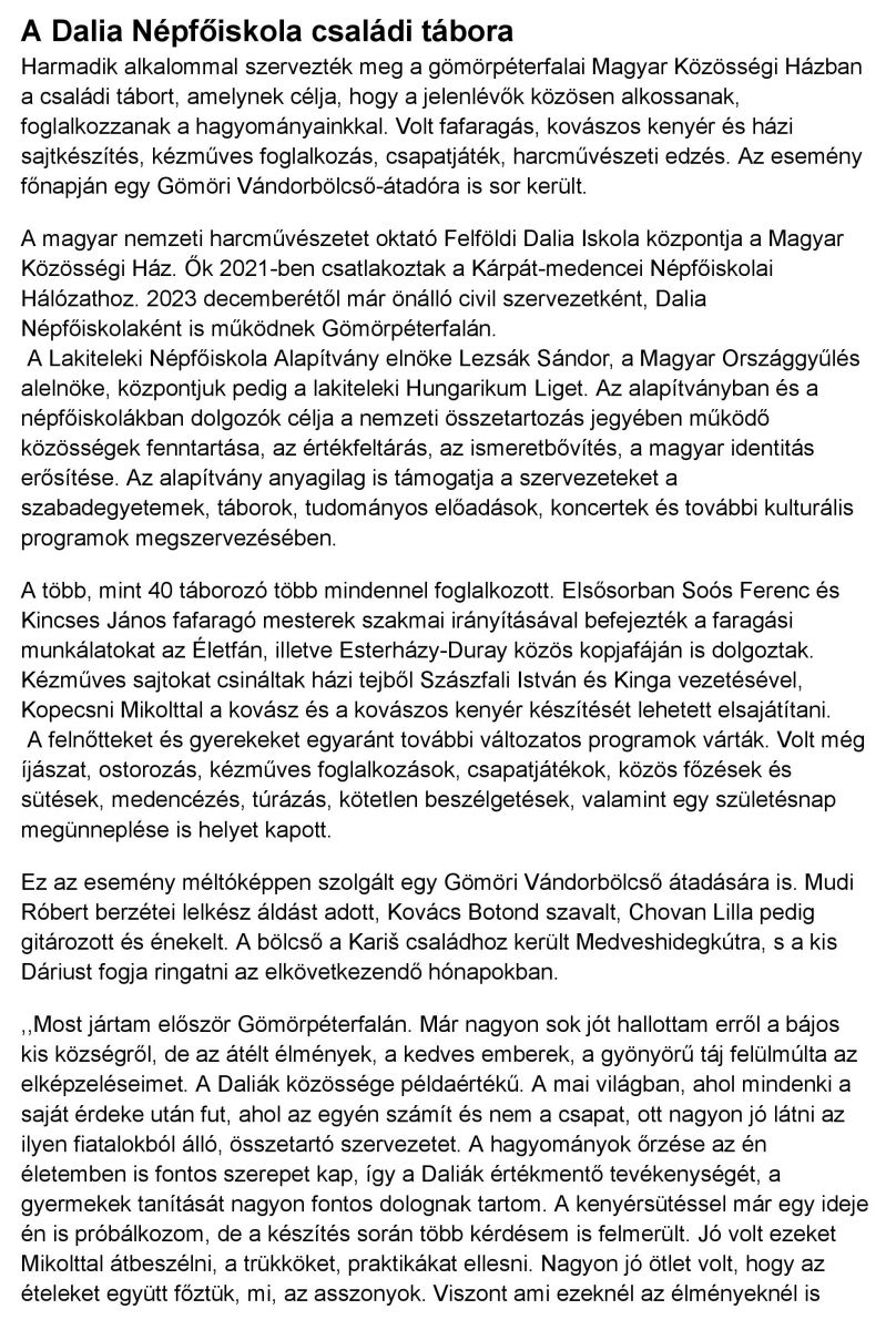 A Dalia Népfőiskola családi tábora