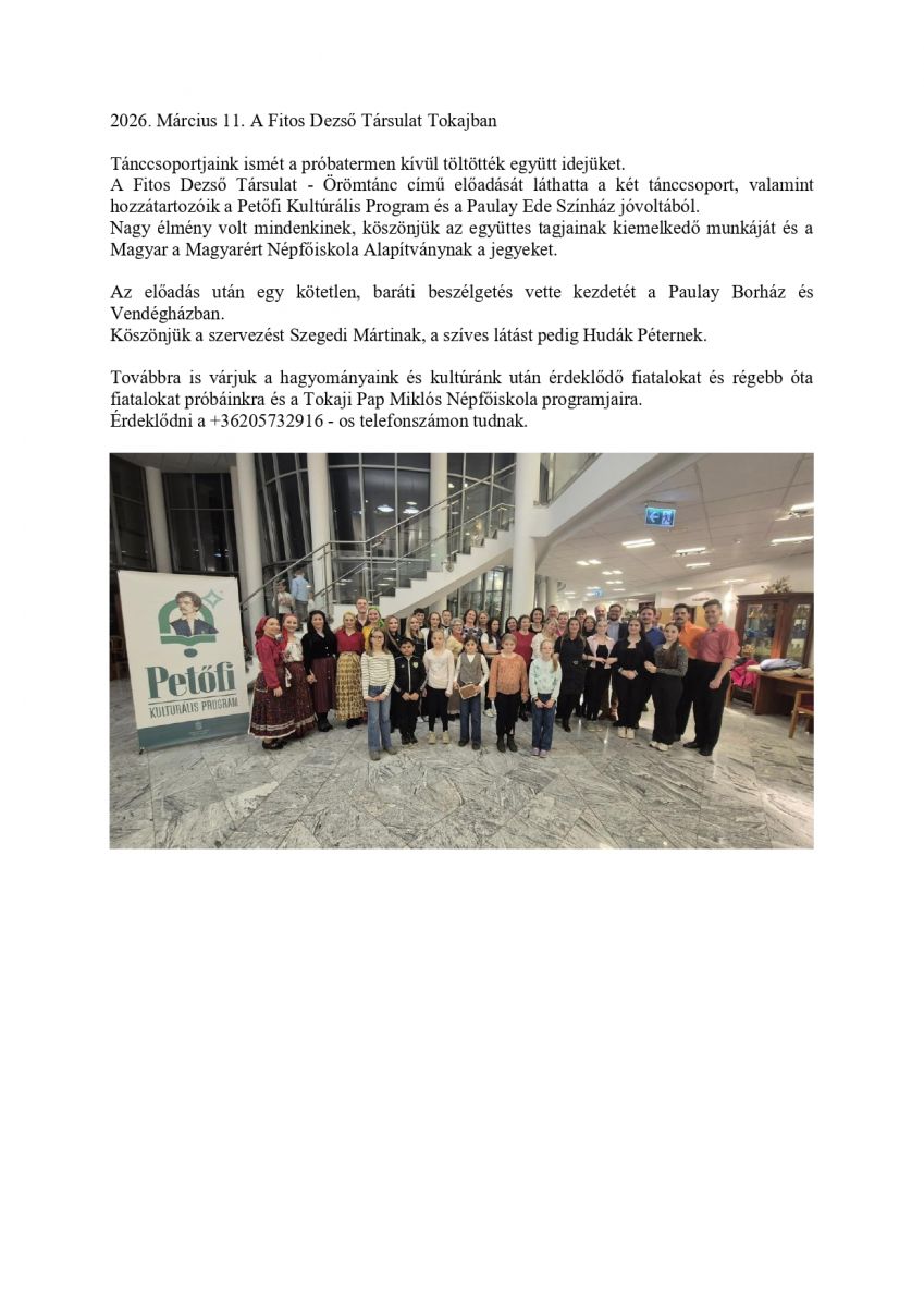 A Fitos Dezső Társulat Tokajban
