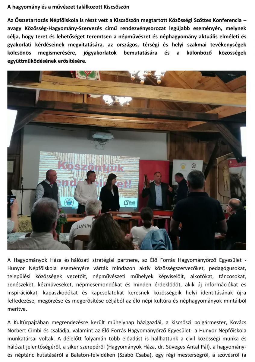 A hagyomány és a művészet találkozott Kiscsőszön