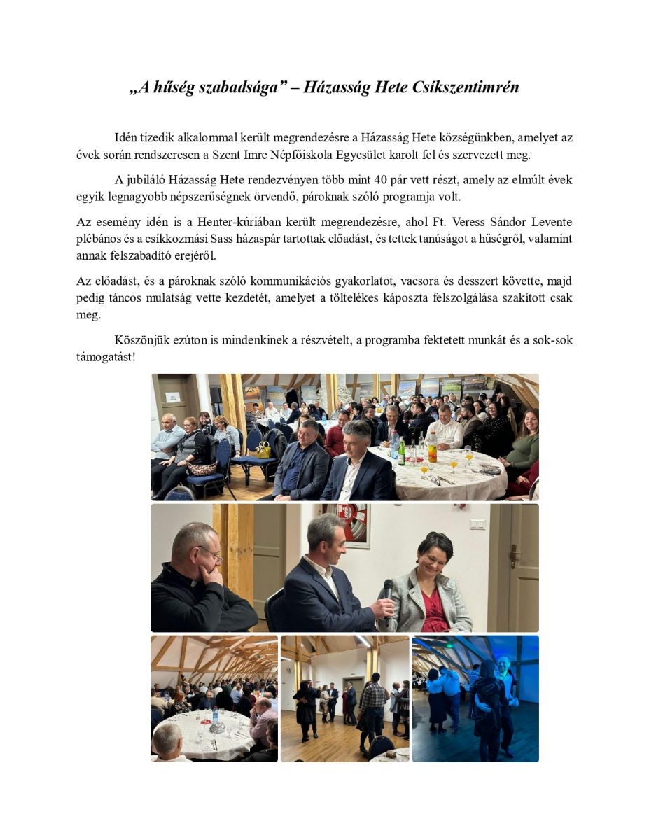 „A hűség szabadsága” – Házasság Hete Csíkszentimrén