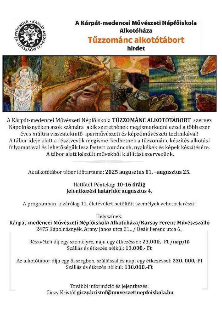 További információért látogassanak el a kápolnásnyéki Kárpát-medencei Művészeti Népfőiskola Alapítvány honlapjára.