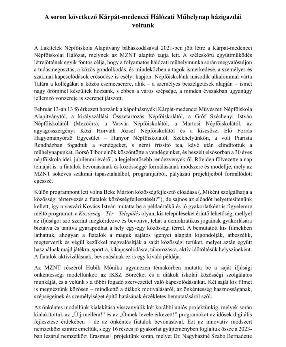 A soron következő Kárpát-medencei Hálózati Műhelynap házigazdái voltunk