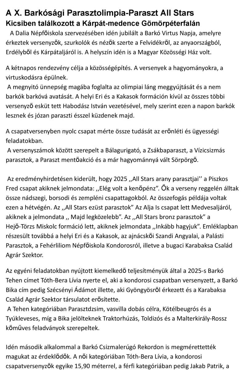 A X. Barkósági Parasztolimpia-Paraszt All Stars