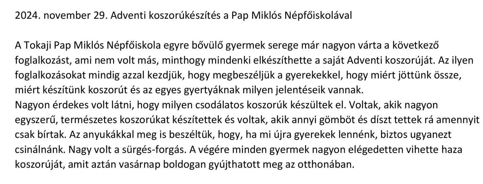 Adventi koszorúkészítés a Pap Miklós Népfőiskolával