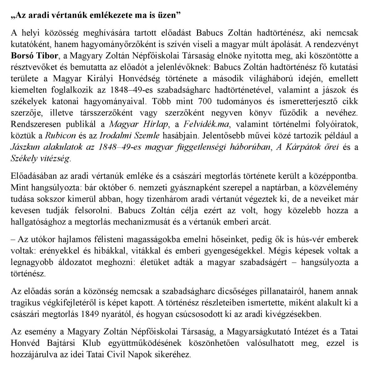 Látogasson el a tatai Magyary Zoltán Népfőiskolai Társaság weboldalára.