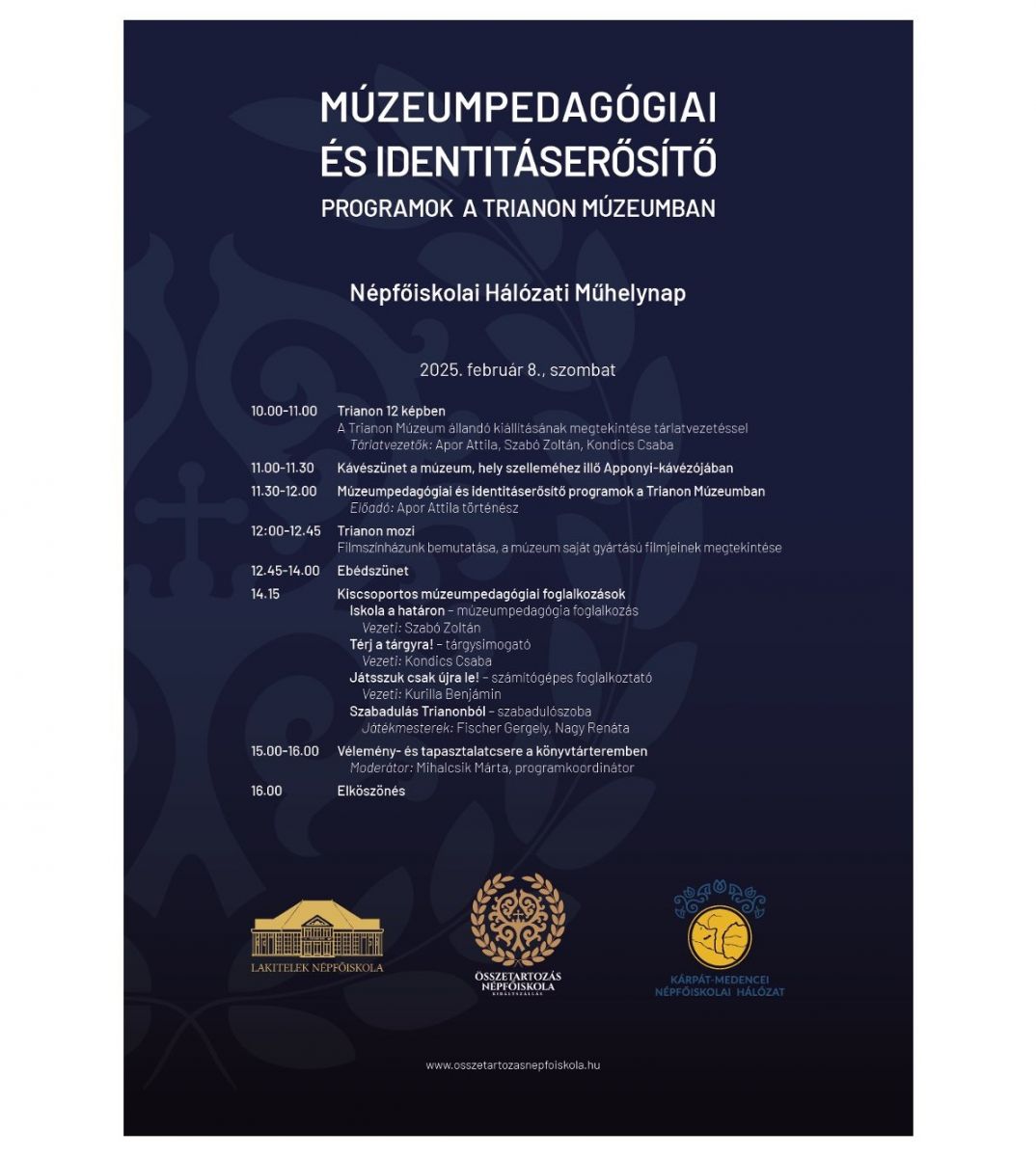 További információért látogassanak el a királyszállási Nagy-Magyarország Park Nonprofit Kft. - Összetartozás Népfőiskola weboldalára.