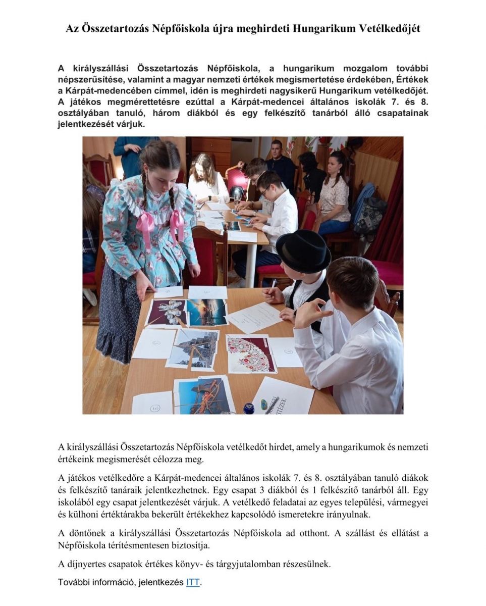 Az Összetartozás Népfőiskola újra meghirdeti Hungarikum Vetélkedőjét