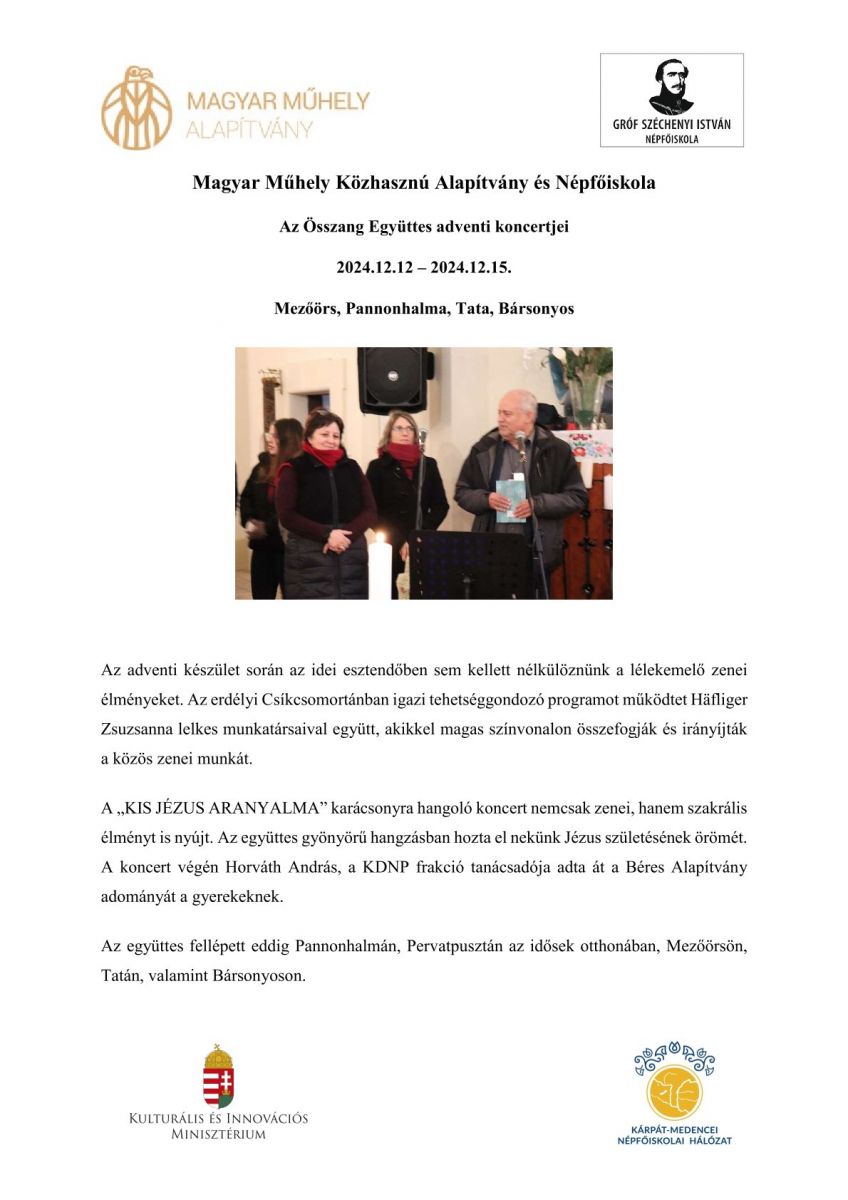 Az Összhang Együttes adventi koncertjei
