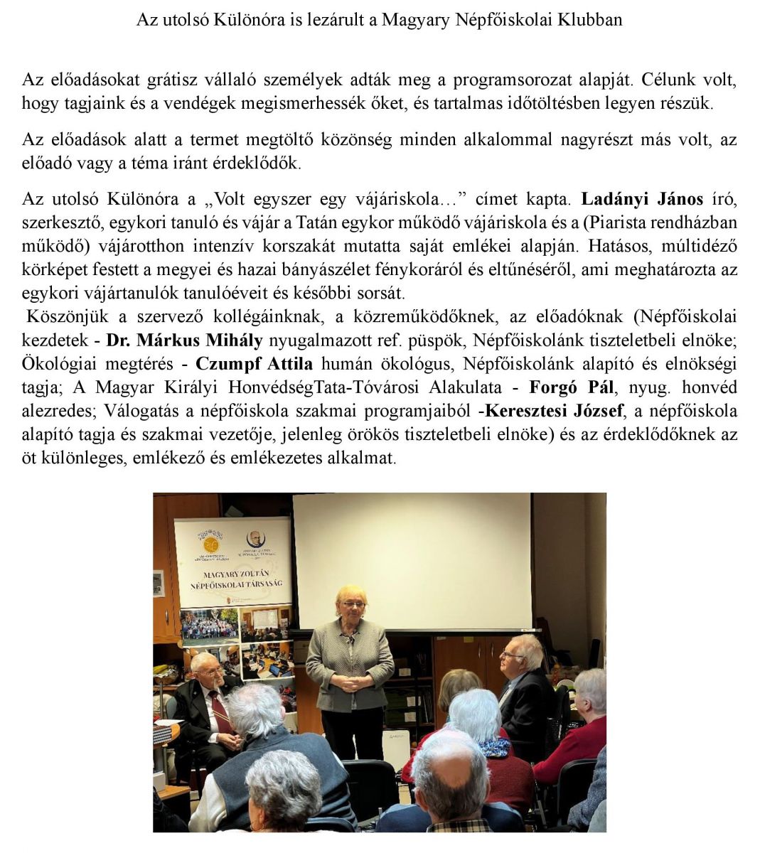 Az utolsó Különóra is lezárult a Magyary Népfőiskolai Klubban