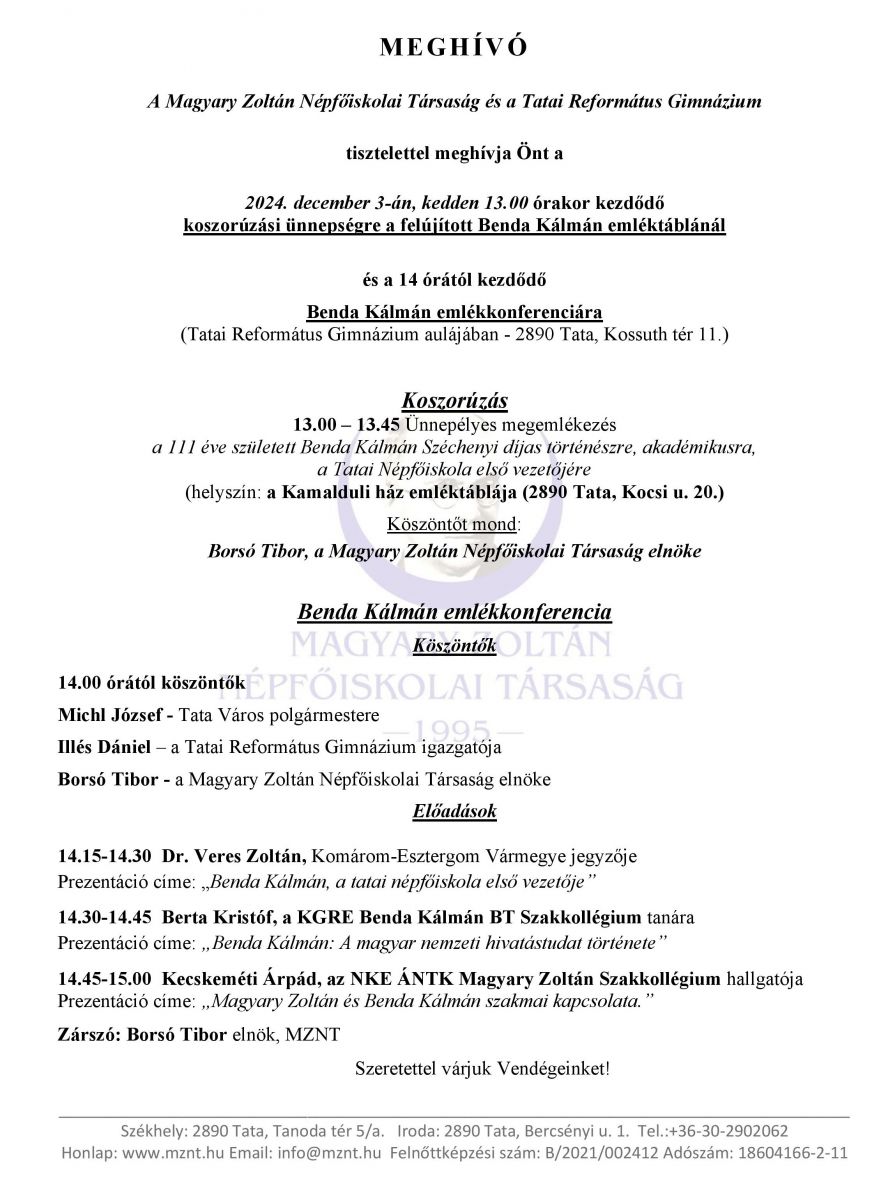 Látogasson el a tatai Magyary Zoltán Népfőiskolai Társaság weboldalára.
