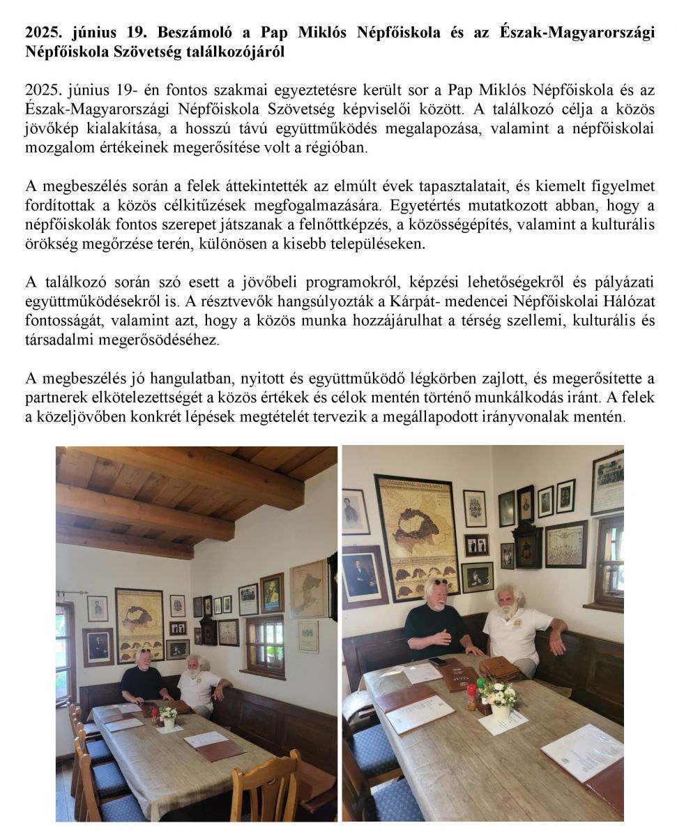 Beszámoló a Pap Miklós Népfőiskola és az Észak-Magyarországi Népfőiskola Szövetség találkozójáról
