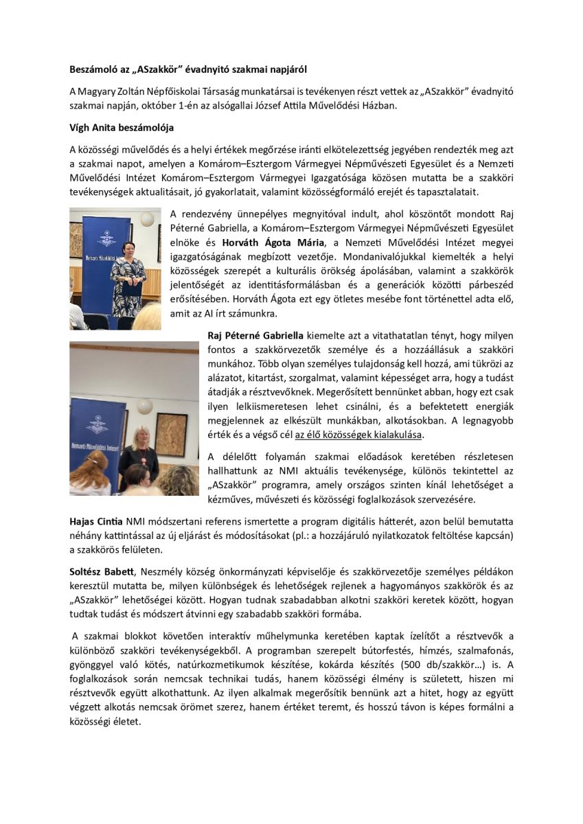 Beszámoló az „ASzakkör” évadnyitó szakmai napjáról