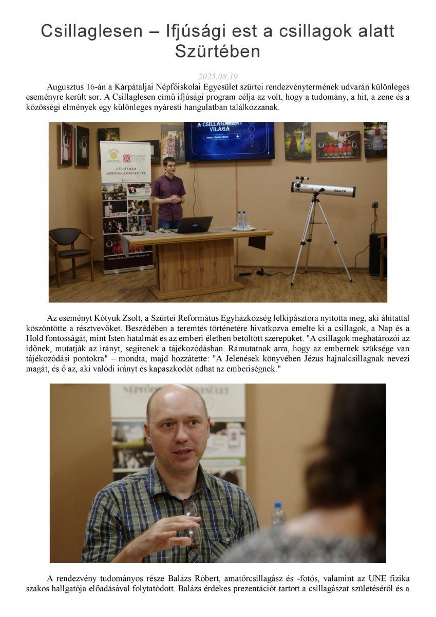 Csillaglesen – Ifjúsági est a csillagok alatt Szürtében
