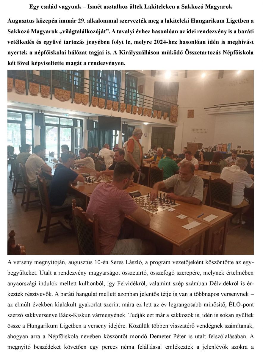 Egy család vagyunk – Ismét asztalhoz ültek Lakiteleken a Sakkozó Magyarok