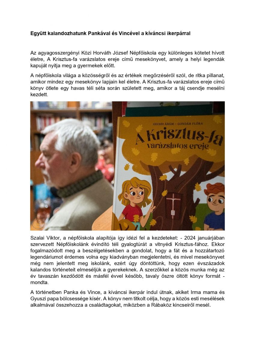 További információért látogassanak el az agyagosszergényi Közi Horváth József Népfőiskola honlapjára.
