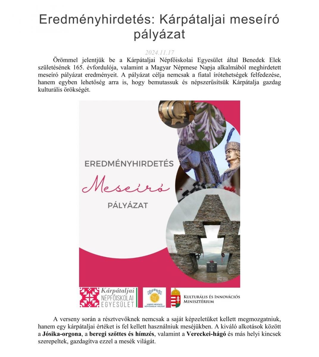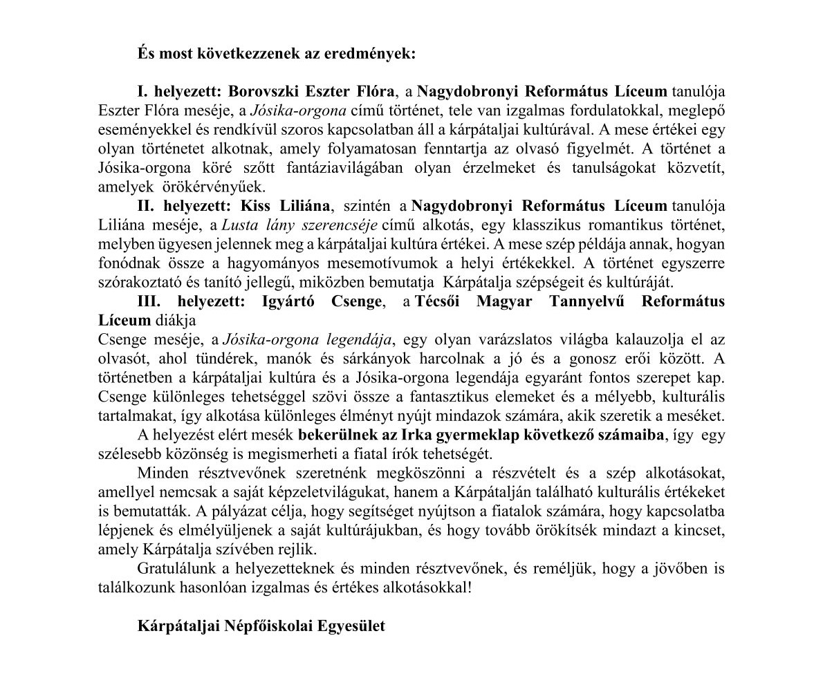 Eredményhirdetés: Kárpátaljai meseíró pályázat