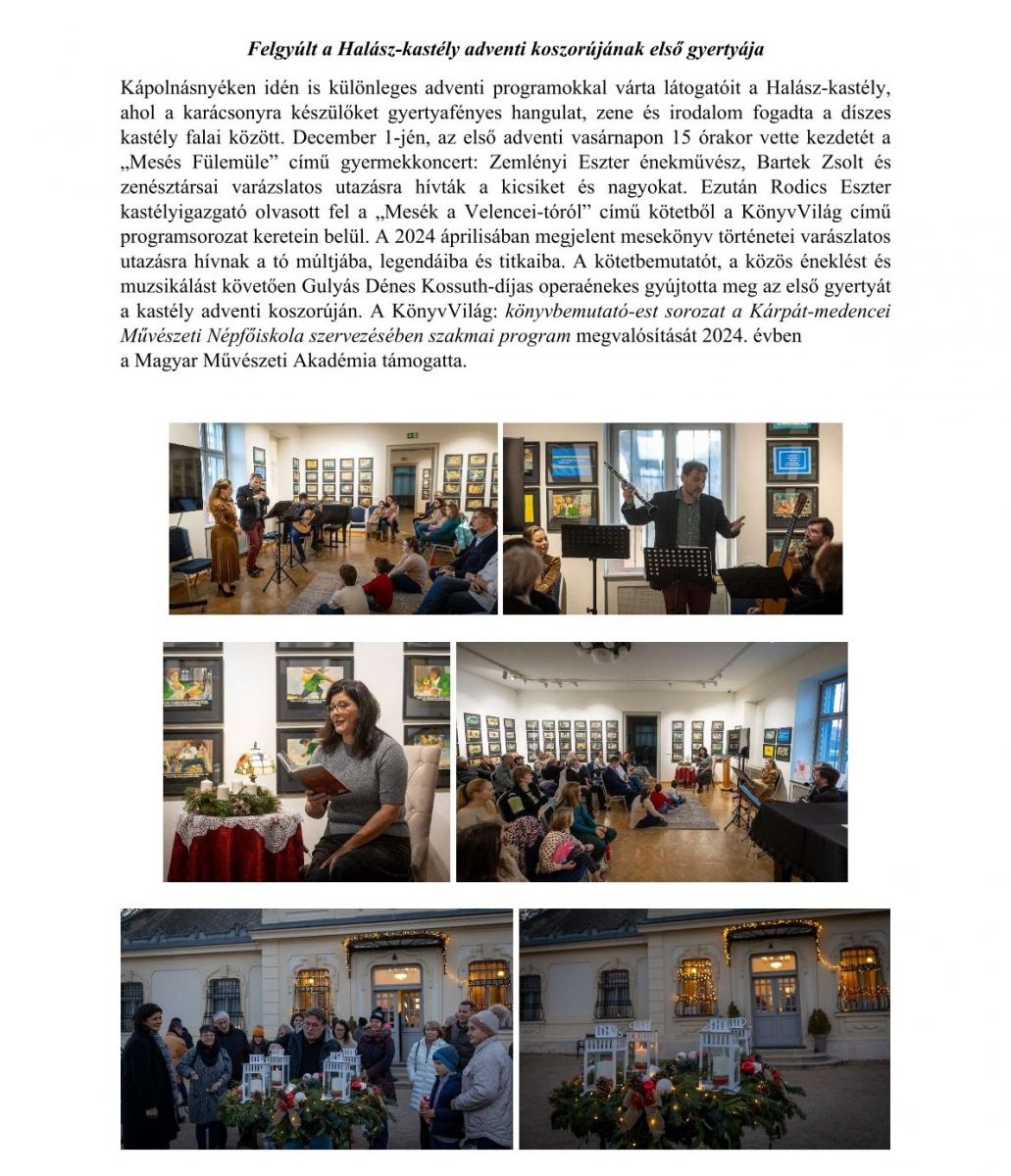 Felgyúlt a Halász-kastély adventi koszorújának első gyertyája
