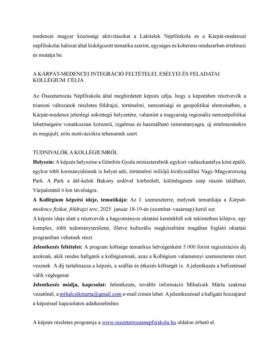 Felhívás – A Kárpát-medencei integráció feltételei, esélyei és feladatai Kollégium