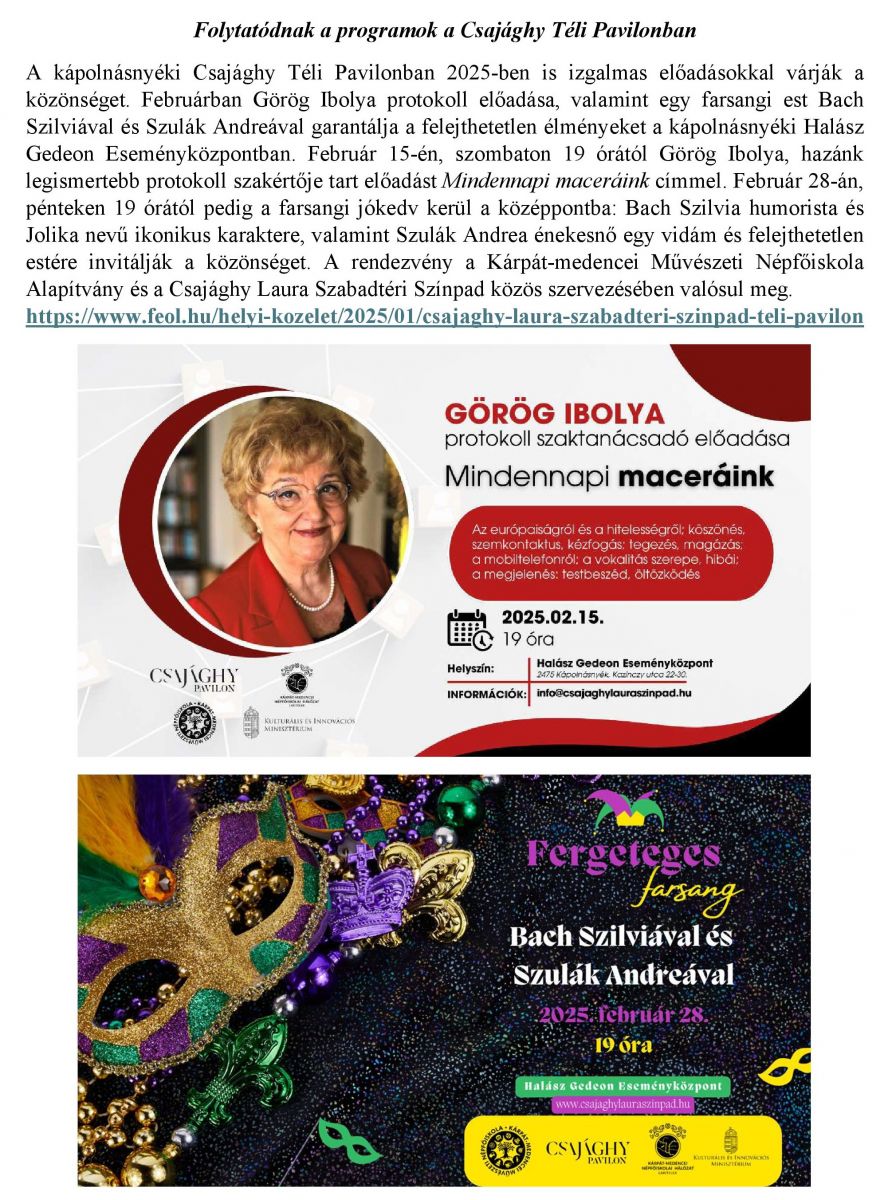 Folytatódnak a programok a Csajághy Téli Pavilonban