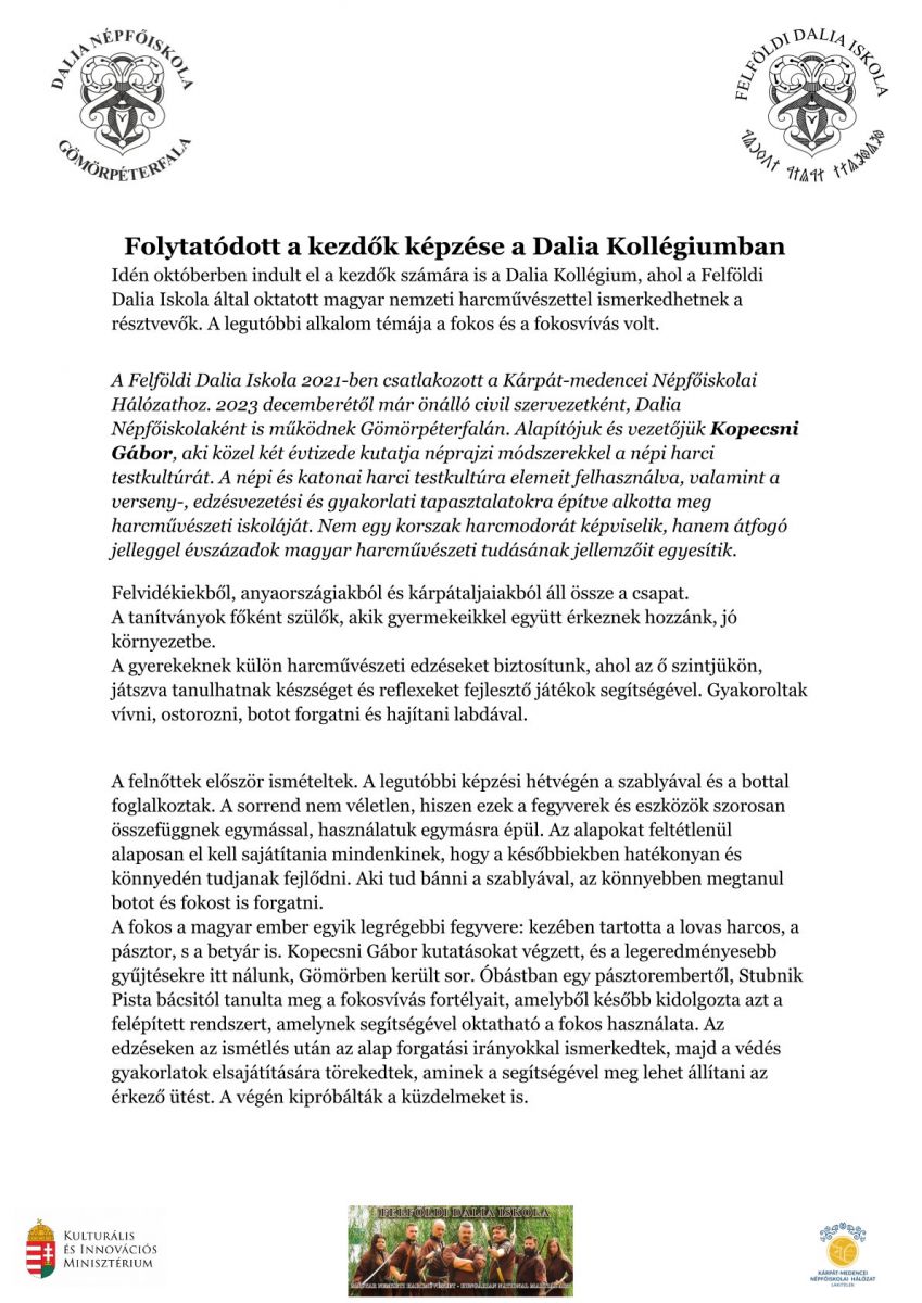 Folytatódott a kezdők képzése a Dalia Kollégiumban