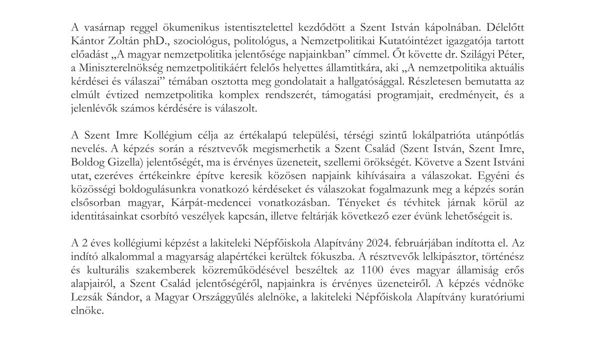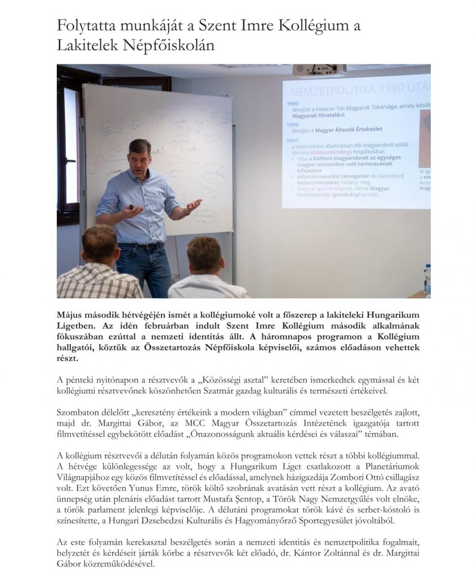 Folytatta munkáját a Szent Imre Kollégium a Lakitelek Népfőiskolán