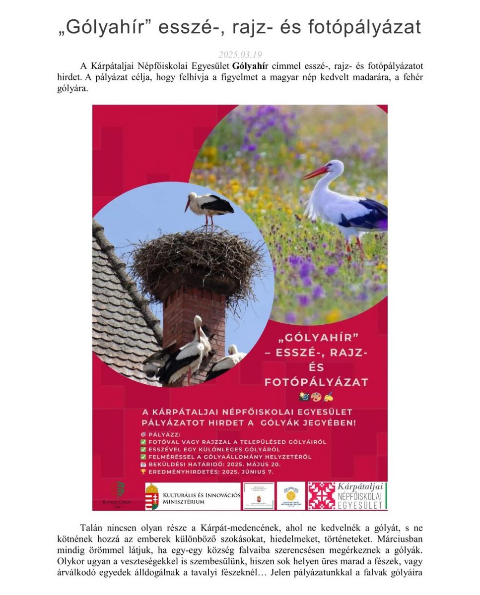„Gólyahír” esszé-, rajz- és fotópályázat