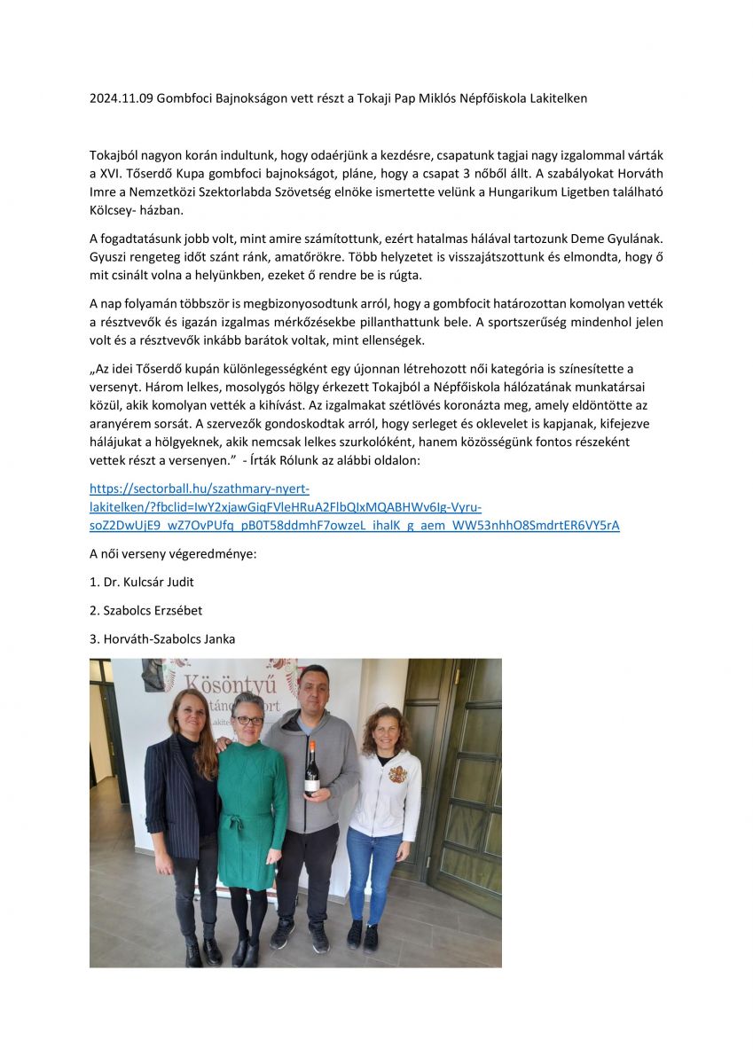 Gombfoci Bajnokságon vett részt a Tokaji Pap Miklós Népfőiskola Lakitelken