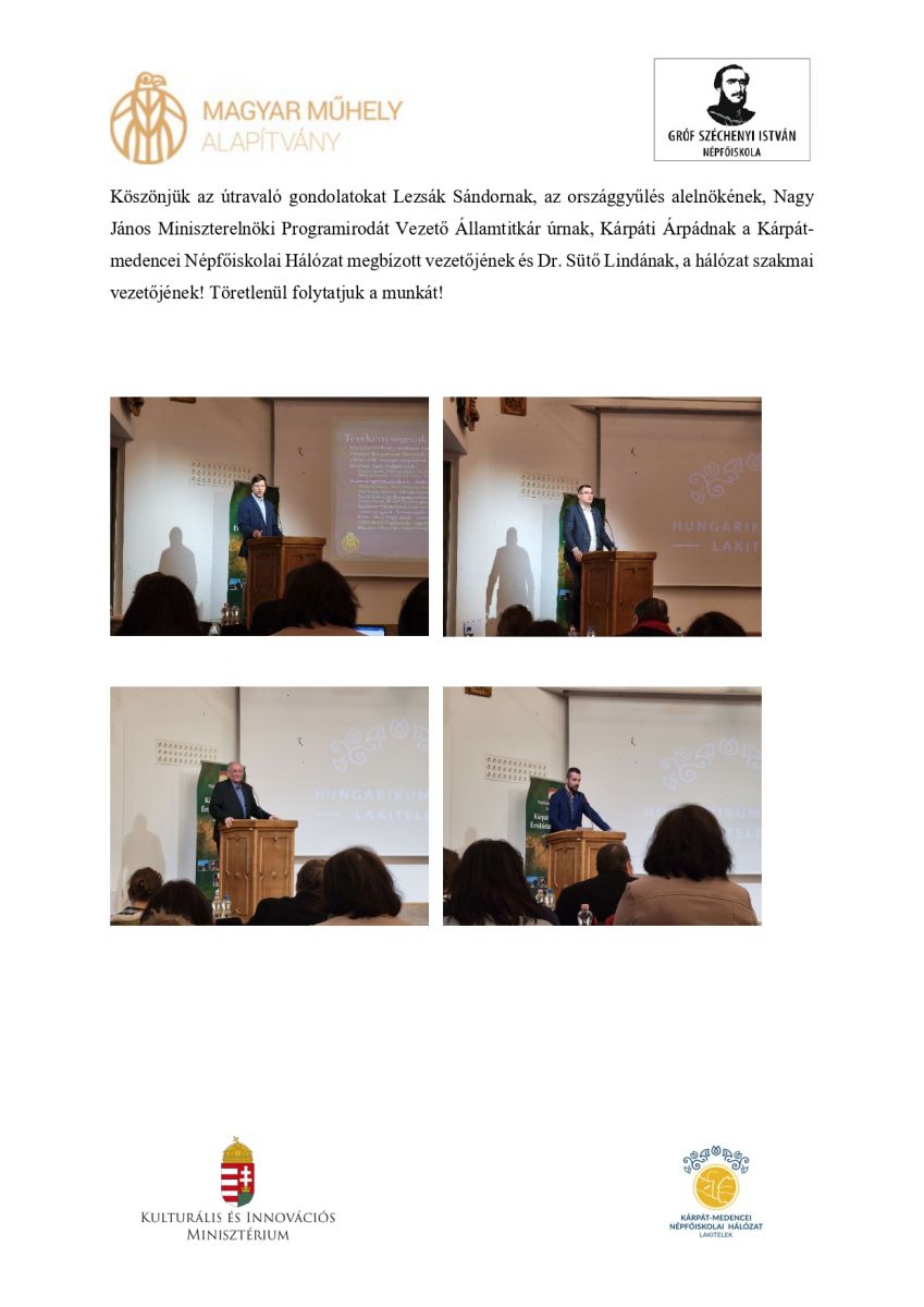 További információért látogassanak el a mezőörsi Magyar Műhely Közhasznú Alapítvány - gr. Széchenyi István Népfőiskola honlapjára.
