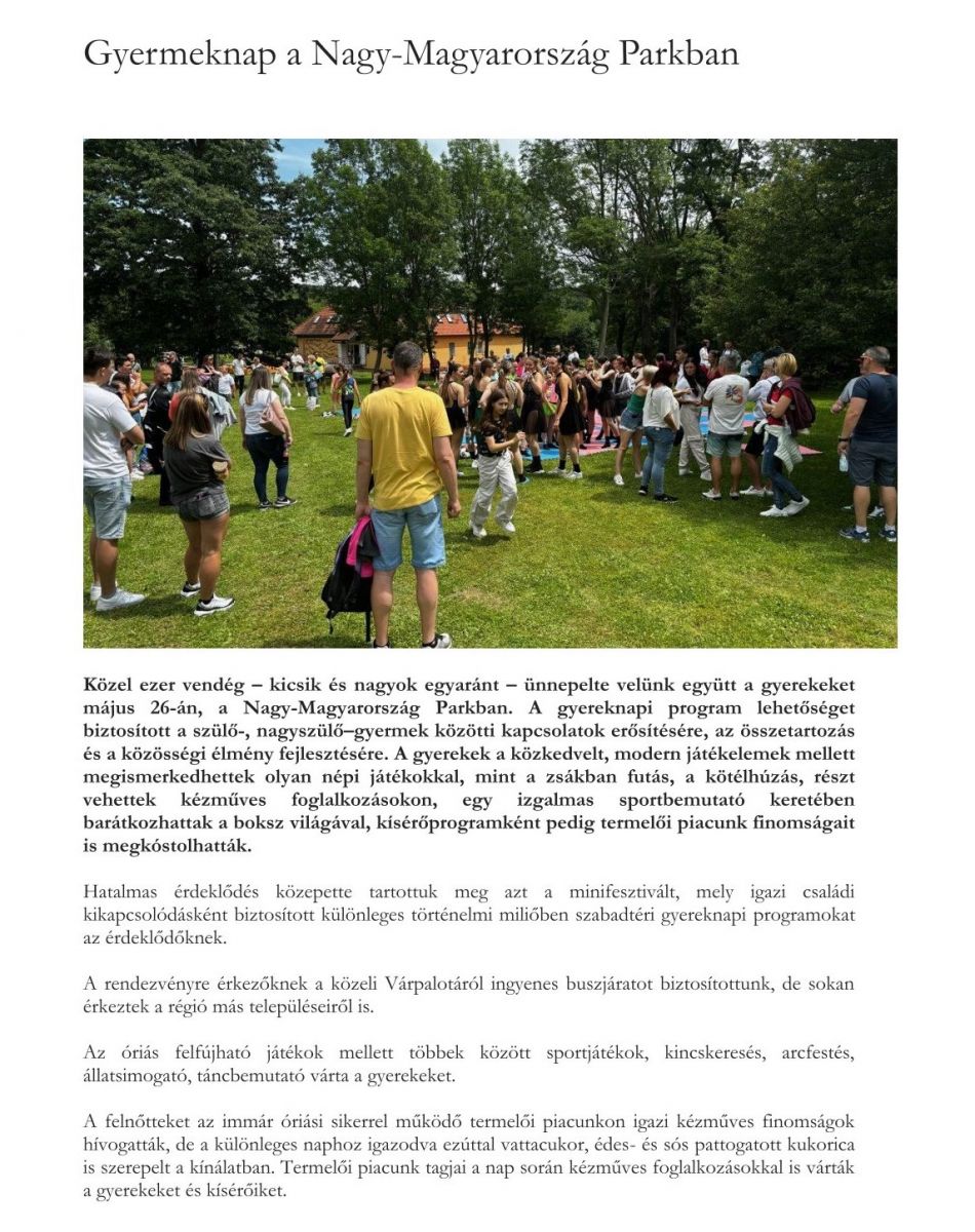 Gyermeknap a Nagy-Magyarország Parkban