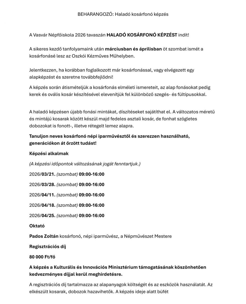 További információért látogassanak el a Vasvári Nagytérségi Népfőiskoláért Alapítvány weboldalára.