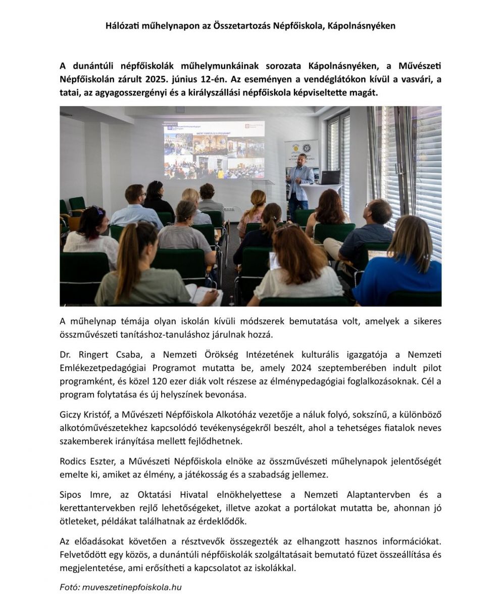 Hálózati műhelynapon az Összetartozás Népfőiskola, Kápolnásnyéken