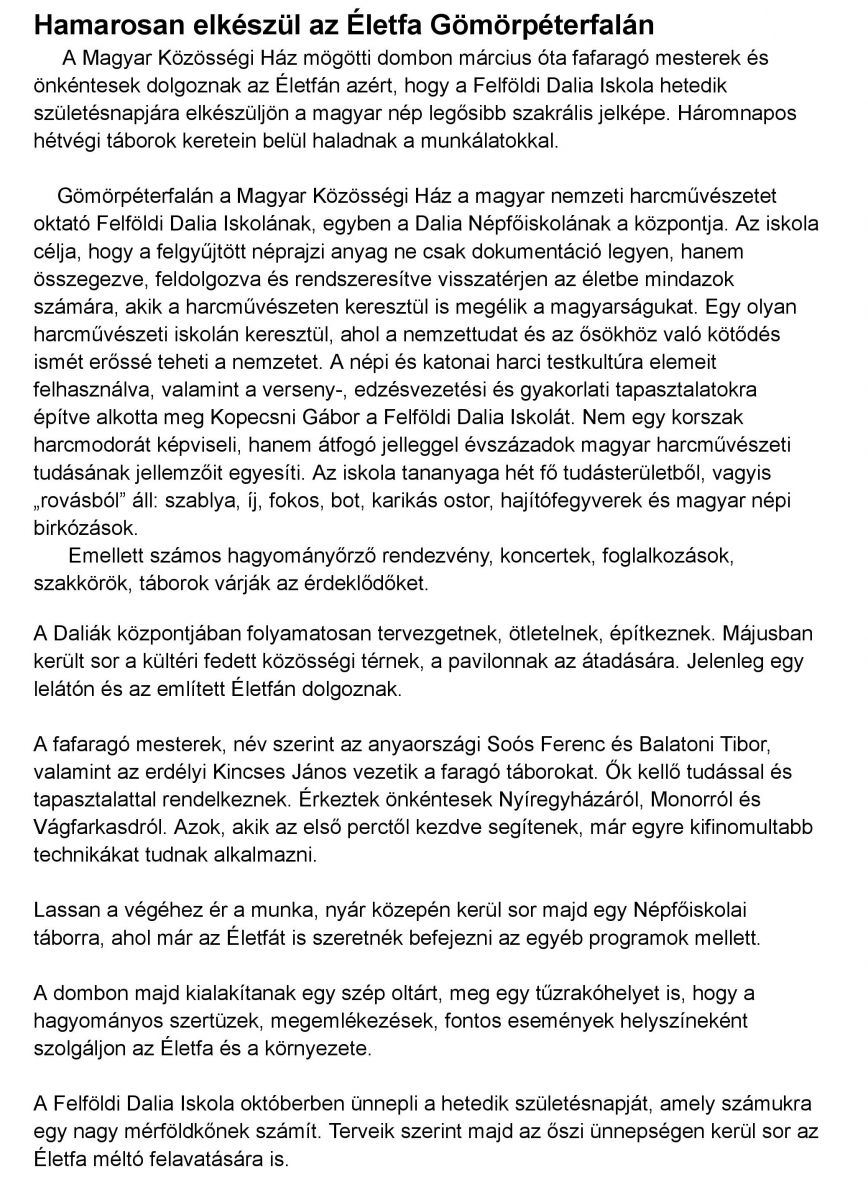 Hamarosan elkészül az Életfa Gömörpéterfalán