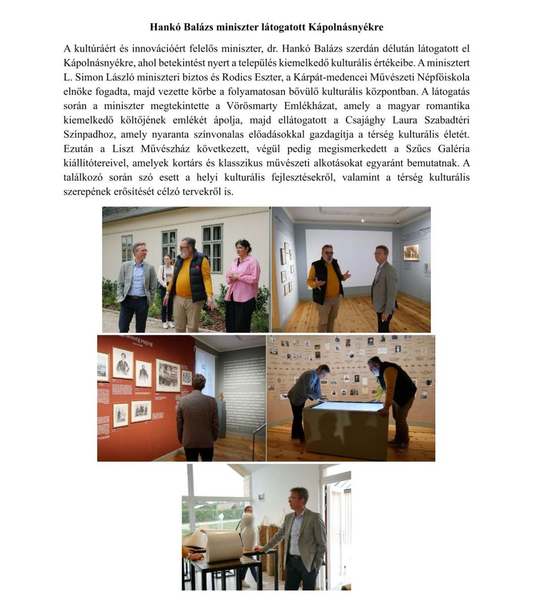 Hankó Balázs miniszter látogatott Kápolnásnyékre
