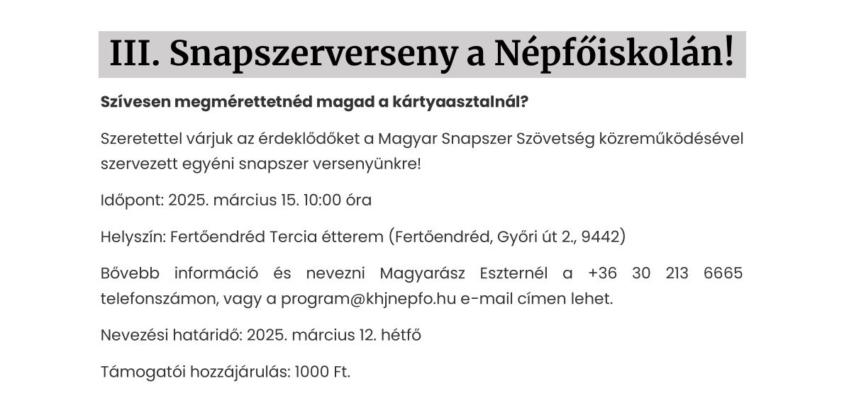 III. Snapszerverseny a Népfőiskolán!