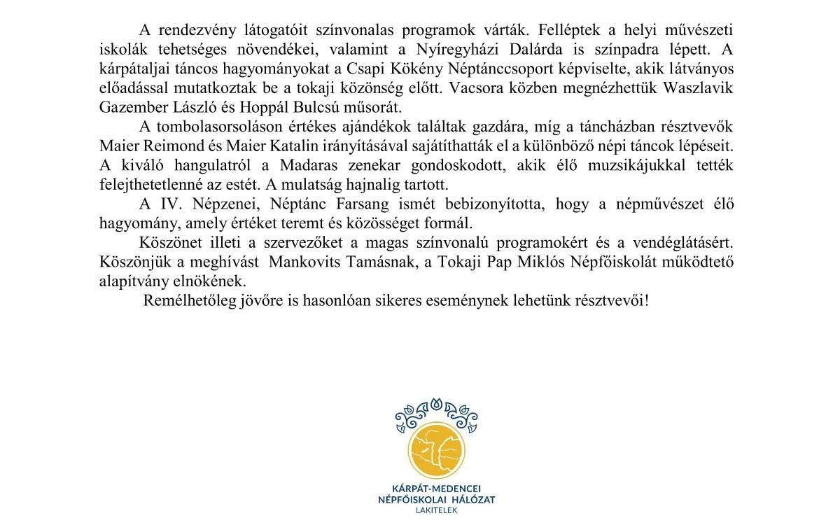 IV. Népzenei és Néptánc Farsang Tokajban