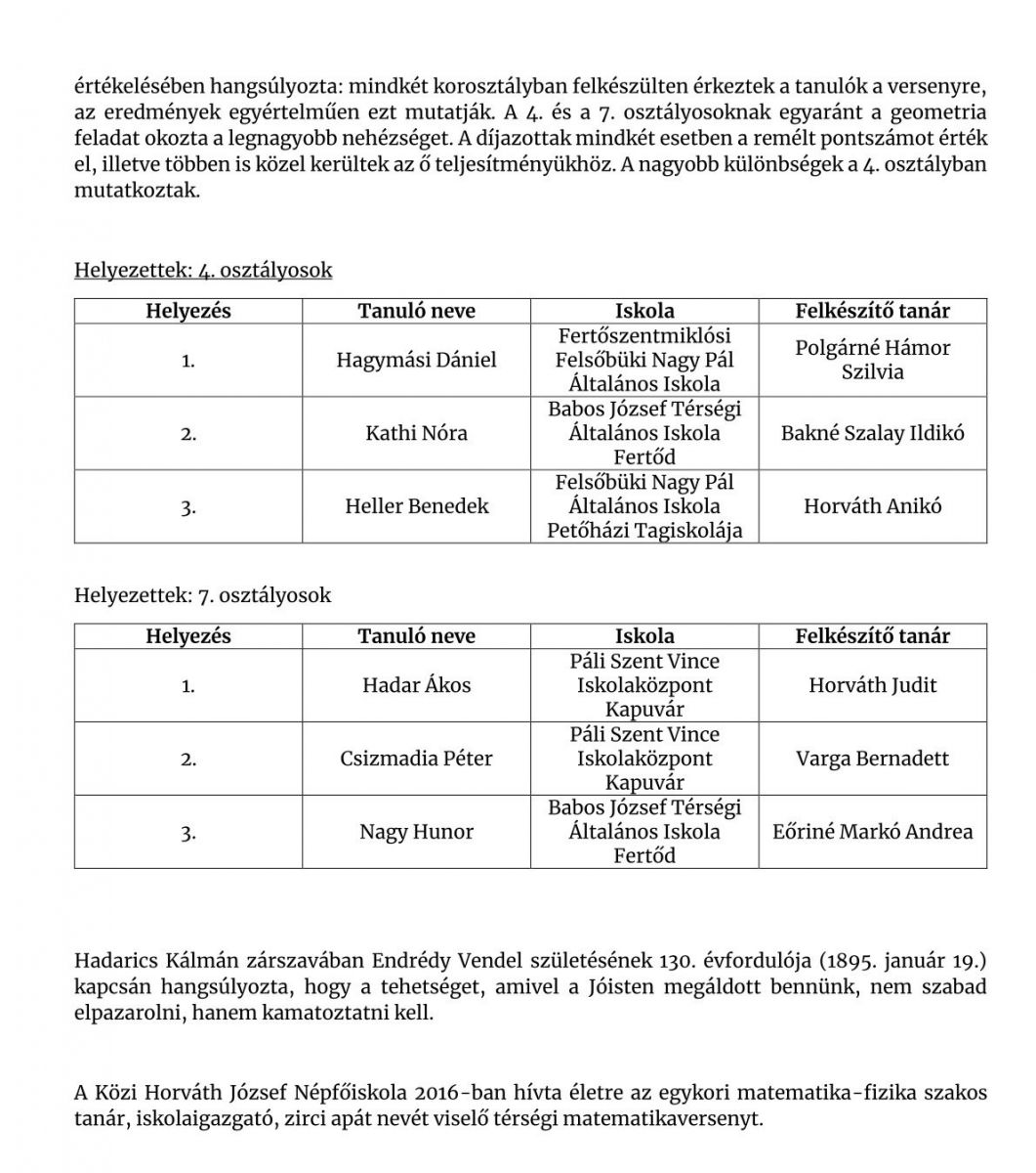 IX. Endrédy Vendel Térségi Matematikaverseny