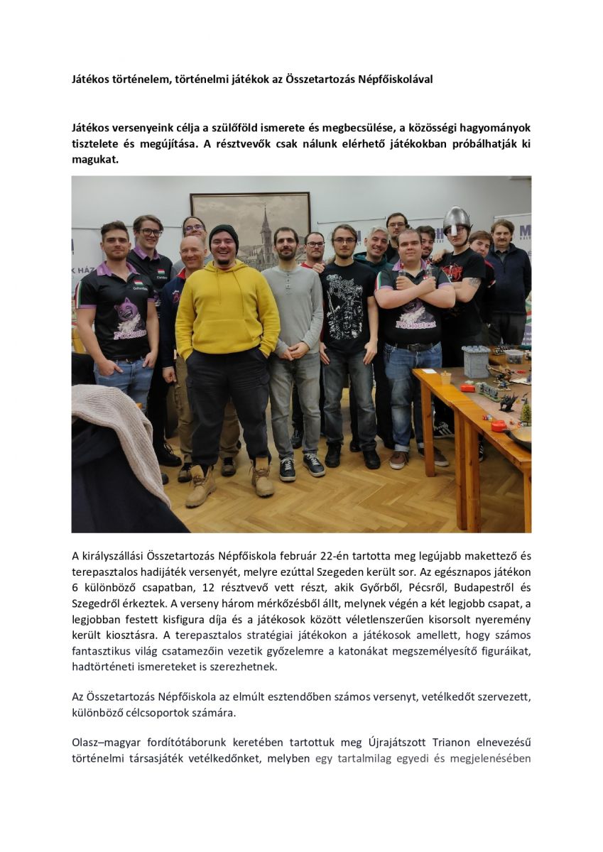 Játékos történelem, történelmi játékok az Összetartozás Népfőiskolával