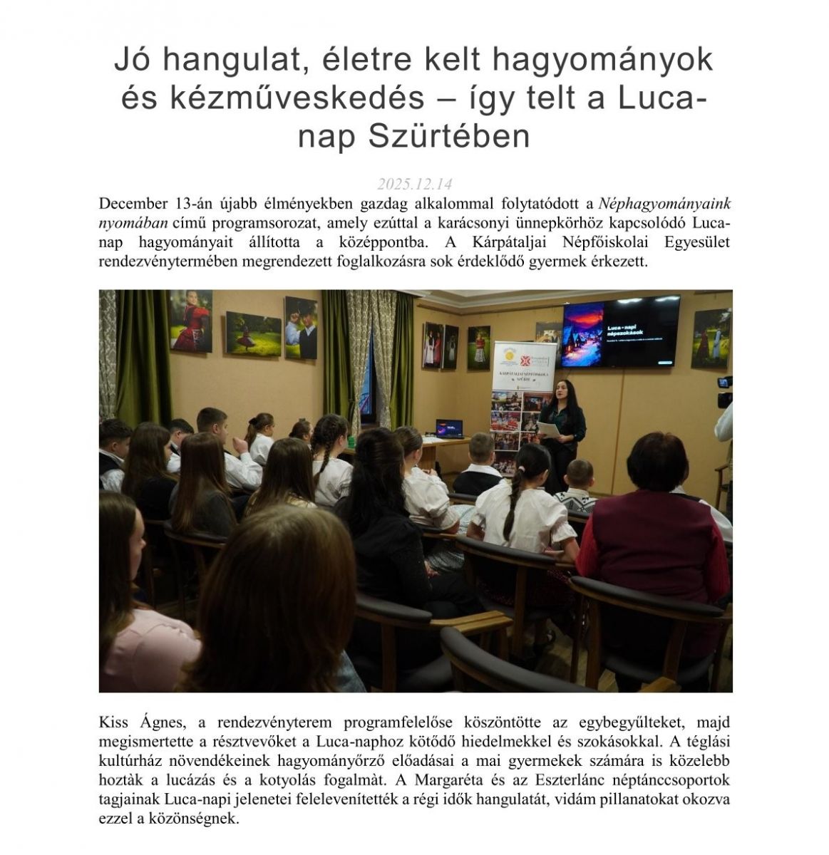 Jó hangulat, életre kelt hagyományok és kézműveskedés – így telt a Luca-nap Szürtében