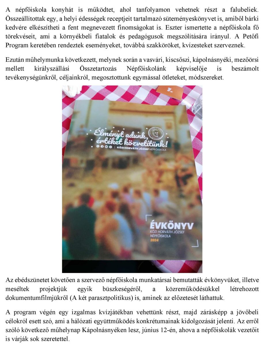 Kárpát-medencei Népfőiskolai Műhelynap Agyagosszergényen