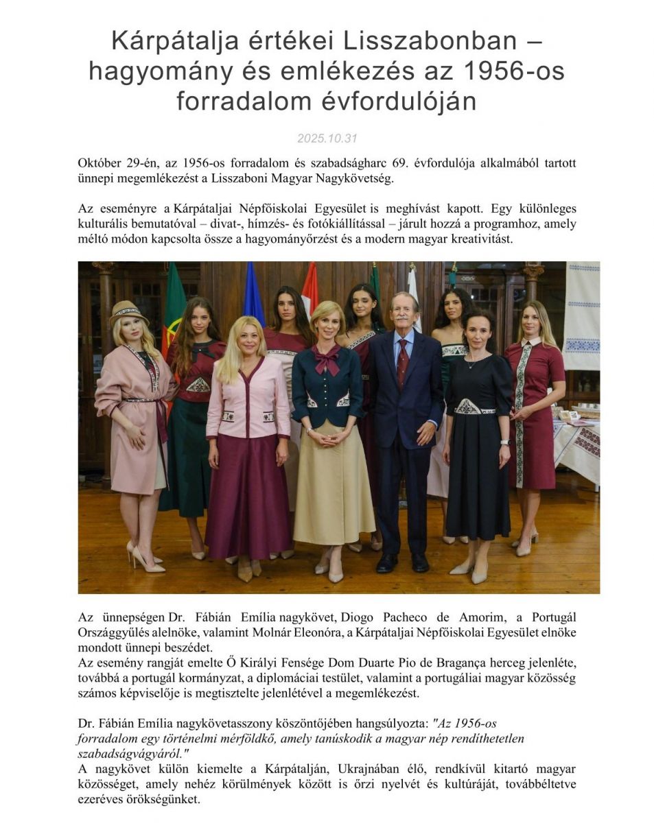 Kárpátalja értékei Lisszabonban – hagyomány és emlékezés az 1956-os forradalom évfordulóján