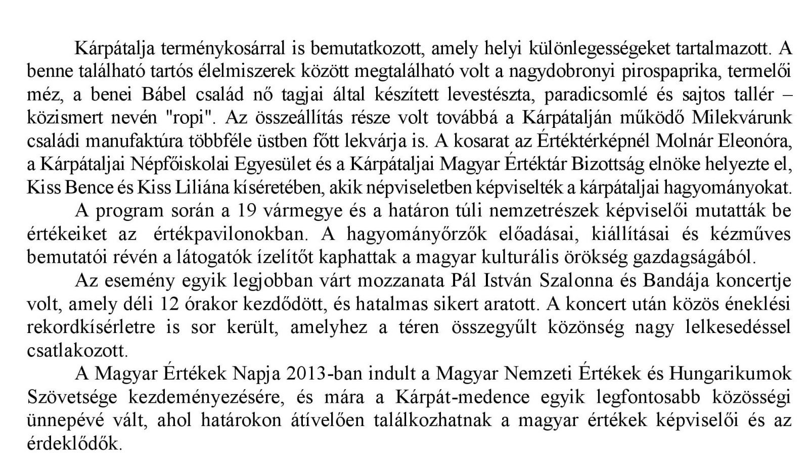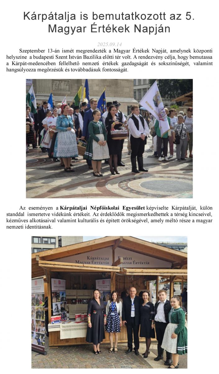 Kárpátalja is bemutatkozott az 5. Magyar Értékek Napján