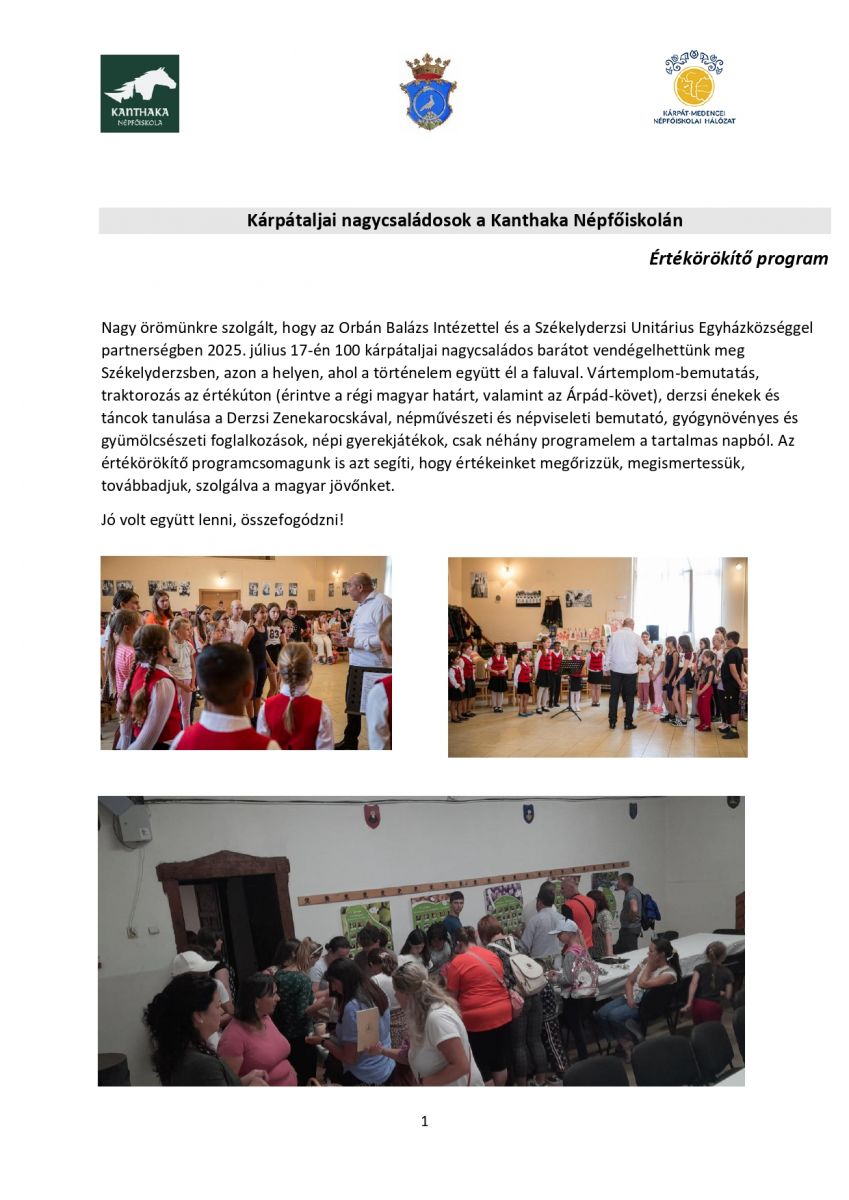 Kárpátaljai nagycsaládosok fogadása a Kanthaka Népfőiskolán
