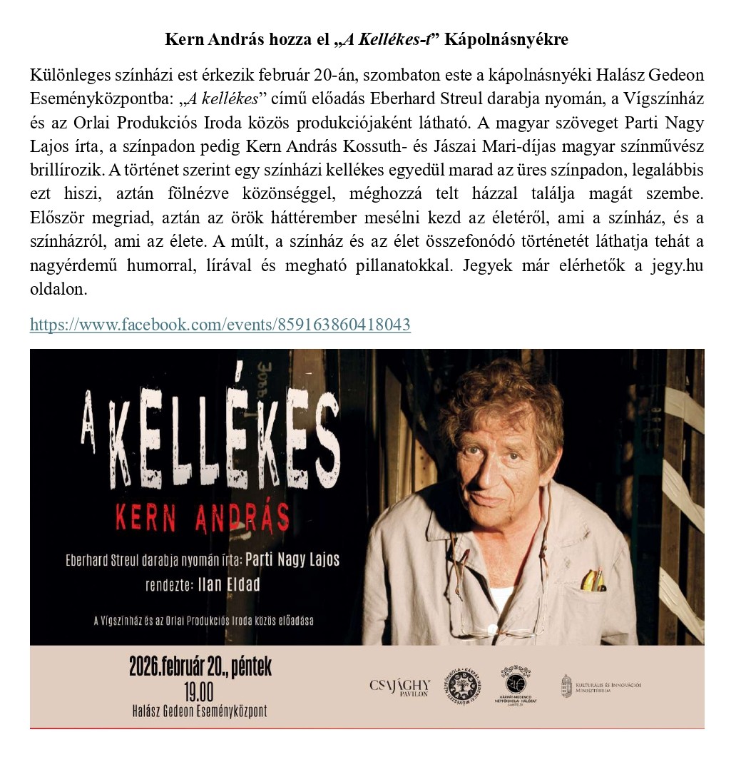 Kern András hozza el „A Kellékes-t” Kápolnásnyékre