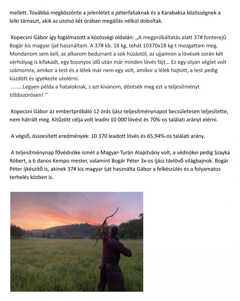 Kopecsni Gábor 12 órás íjász-teljesítménynapja
