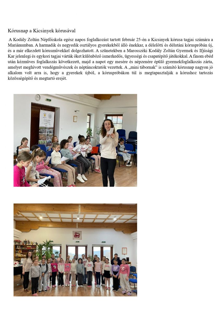 További információért látogassanak el a szovátai Marianum - Kodály Zoltán Népfőiskola Facebook oldalára.