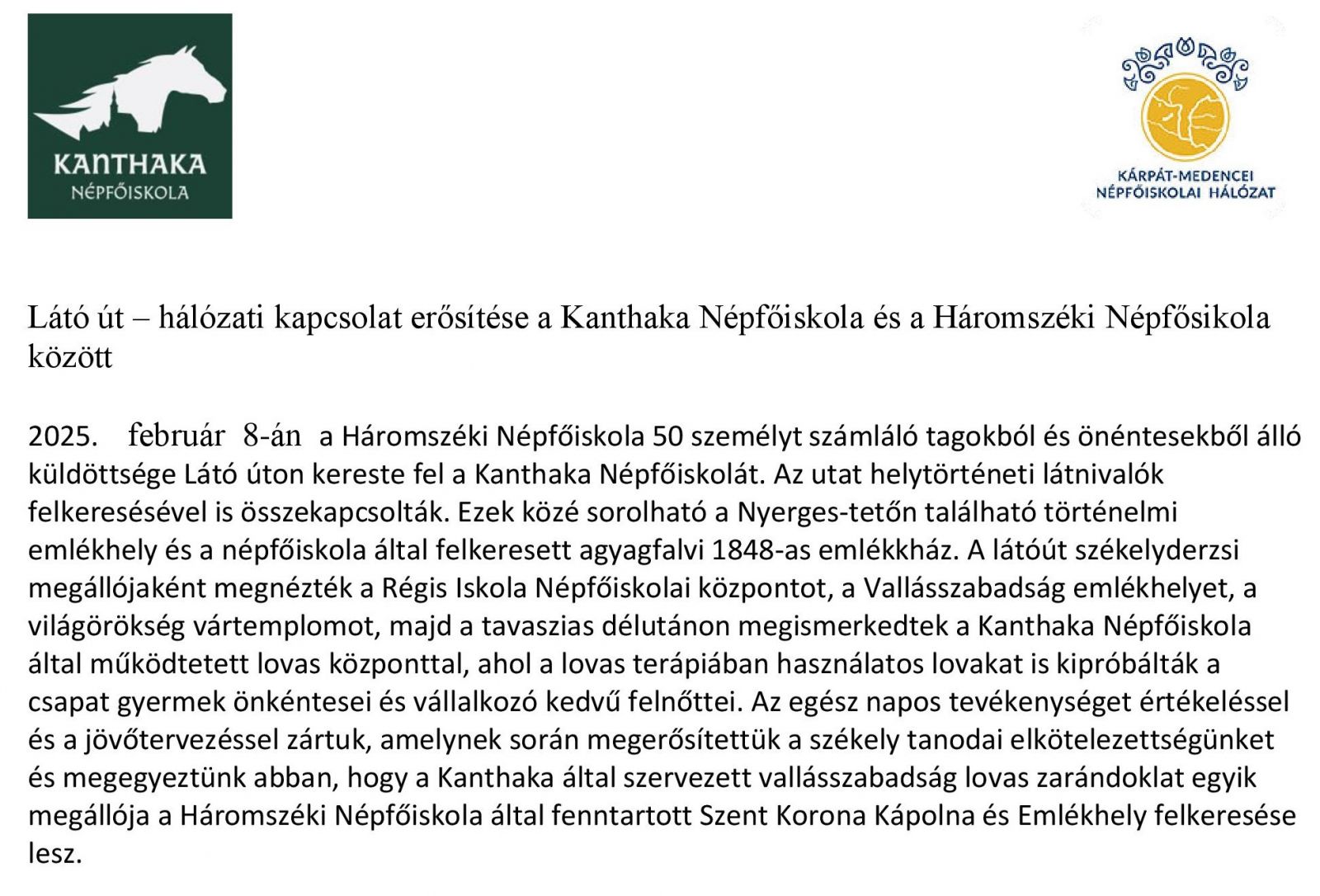 Látó út – hálózati kapcsolat erősítése a Kanthaka Népfőiskola és a Háromszéki Népfősikola között
