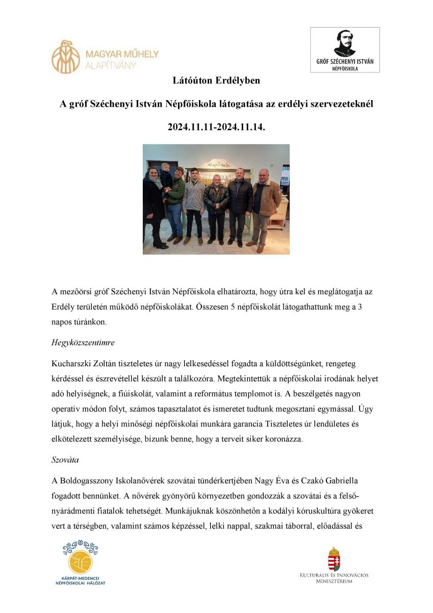 Látóúton Erdélyben - A gróf Széchenyi István Népfőiskola látogatása az erdélyi szervezeteknél